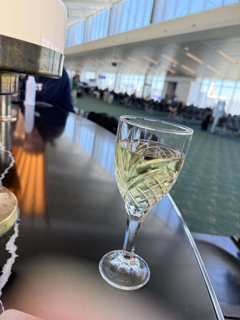 It means you can grab coffee, a book, or lunch without feeling like you just financed the runway expansion. I appreciate this even more after last week when I ordered a Chardonnay at the Oakland airport – it was late (closing time), so the bartender served it in a “to go” cup (classy) and charged me $42. Pictured below, the chardonnay I enjoy at the bar at Gate E12 for a fraction of that price.